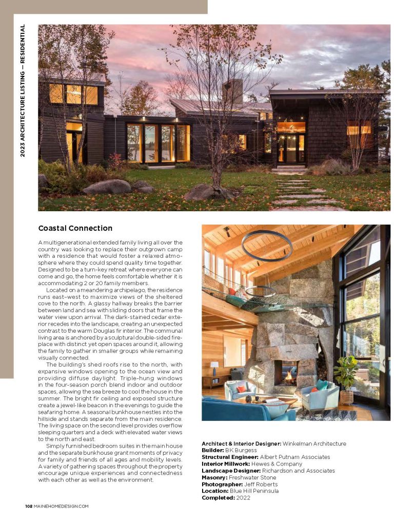 We are architects based in Maine with expertise in creating custom designs for single-family residences. Our projects span across Maine, Massachusetts, California, and Canada. We often deal with remote sites, showcasing our ability to navigate challenges effectively. Whether working side by side or from a distance, we adeptly handle design discussions using digital resources.