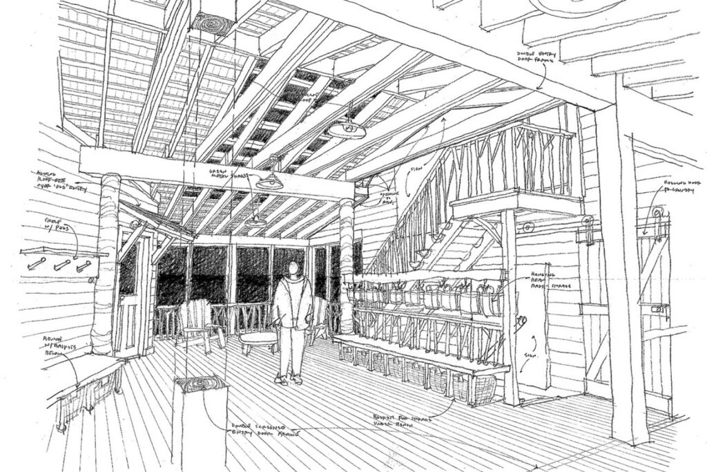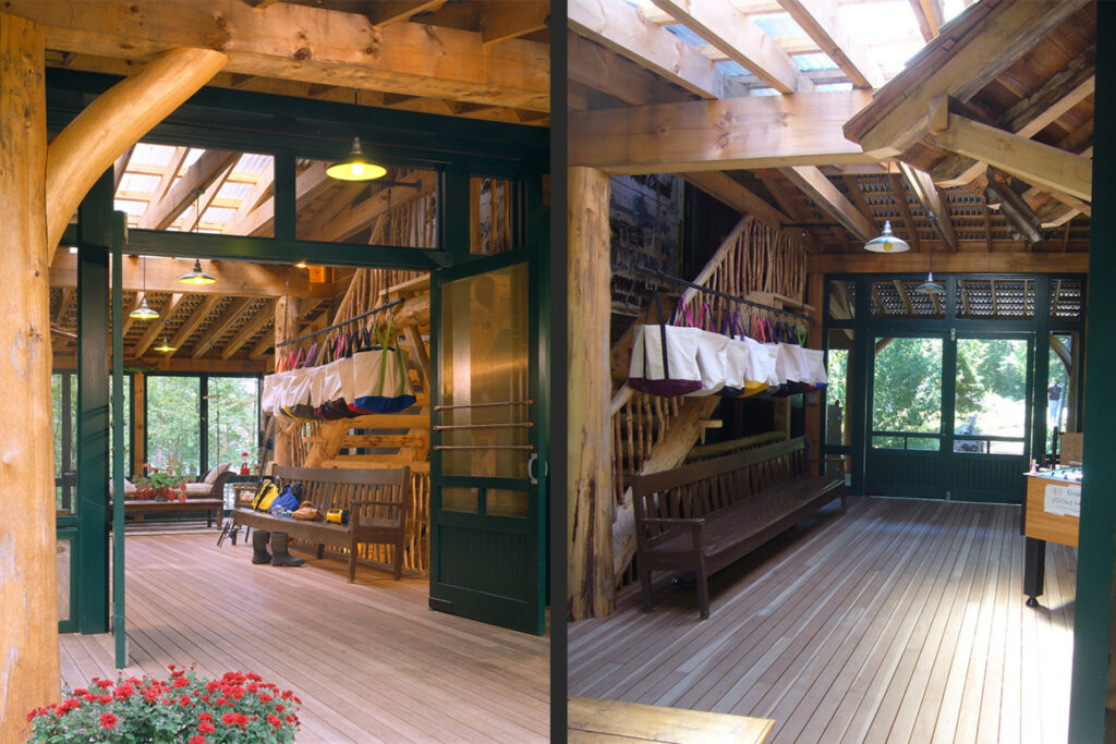 Accommodating a Large and Flexible Program: Designing flexible spaces for up to 20 guests, maintaining a “deep woods” feel, and ensuring fast-track construction.