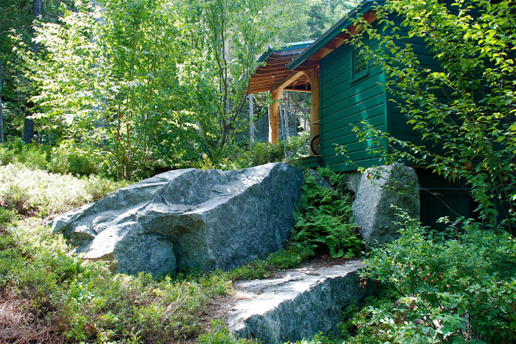 Managing the Complex Site Conditions: Integrating the camp into a heavily wooded, lakeside site with massive boulders and cliffs while preserving the landscape.