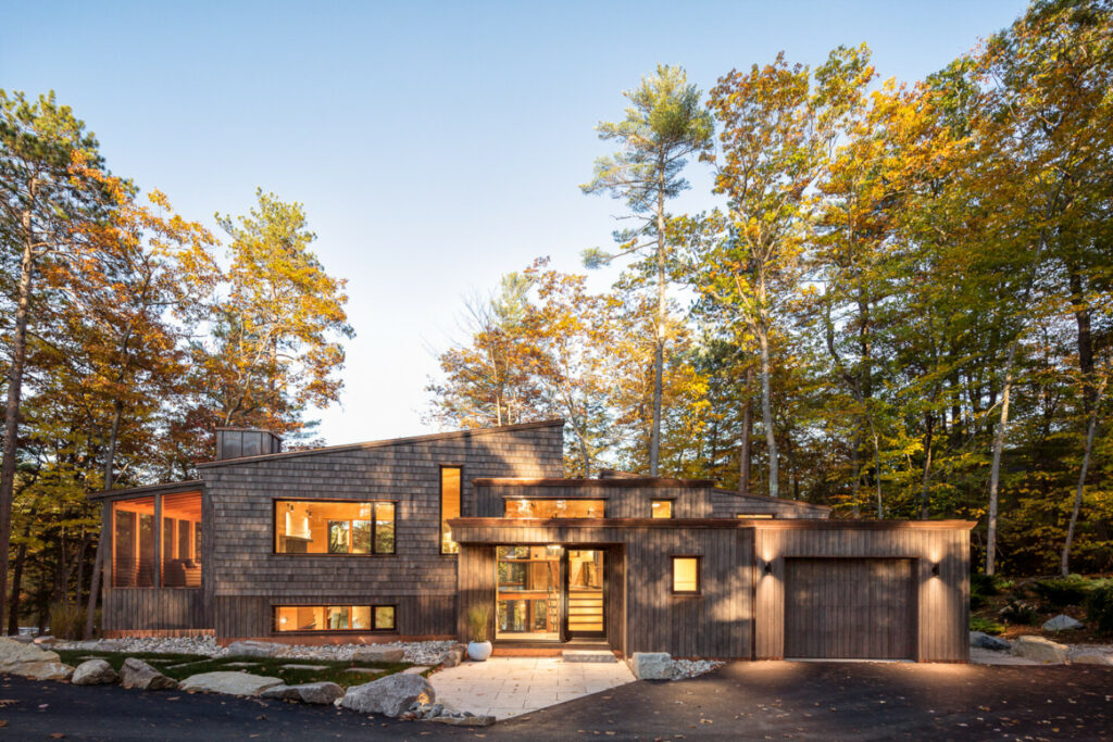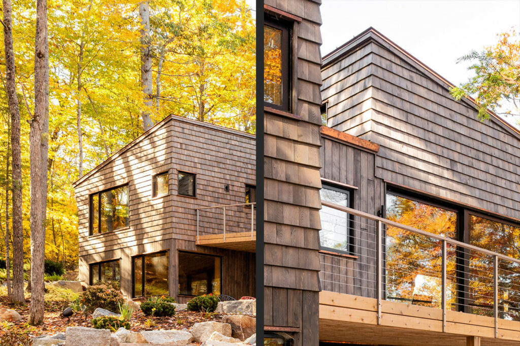 This sloping waterfront lot with a relatively small and triangular buildable envelope made for a challenging location to build a house.