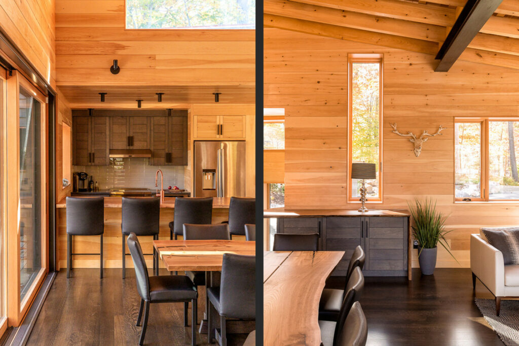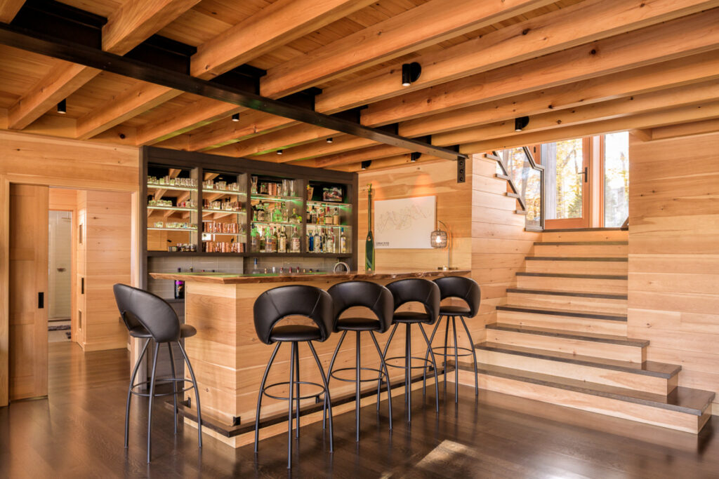 In combination with the comfort of boarded walls and timbered ceilings, the owners asked to design a “near passive house” – constructing it with a superinsulated, high-performance building envelope, to maximize comfort and minimize energy consumption.