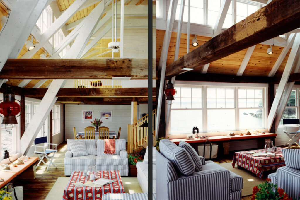 An adaptive reuse of the existing shell into a three-season coastal residence that maintains the original character while incorporating an open informal great room, bedroom, bath, and kitchen.