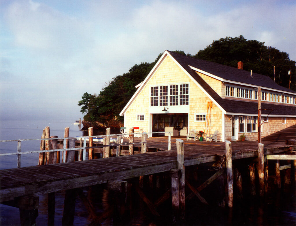 An existing pier and boathouse workspace built in 1860 located on a island near downtown Portland.