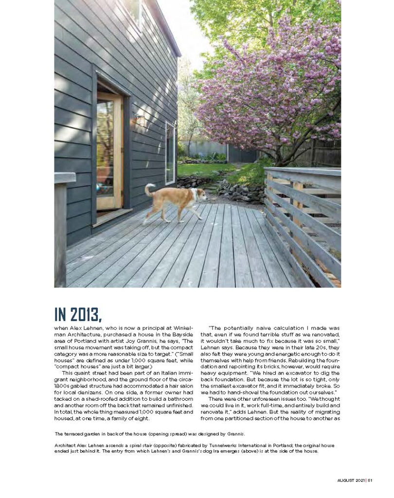 The Munjoy Hill Compact House, completed in 2018 in Portland, ME, is a multi-year owner-built gut renovation. The project focused on maximizing space within a small house on a small parcel, incorporating high-performance building assemblies and achieving a simple yet cost-effective design.