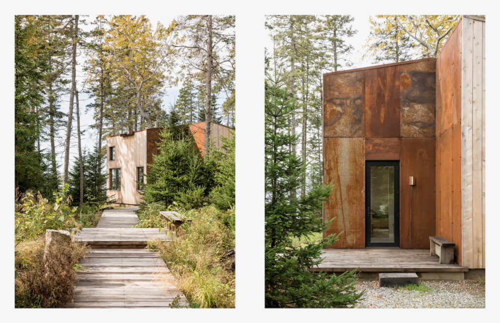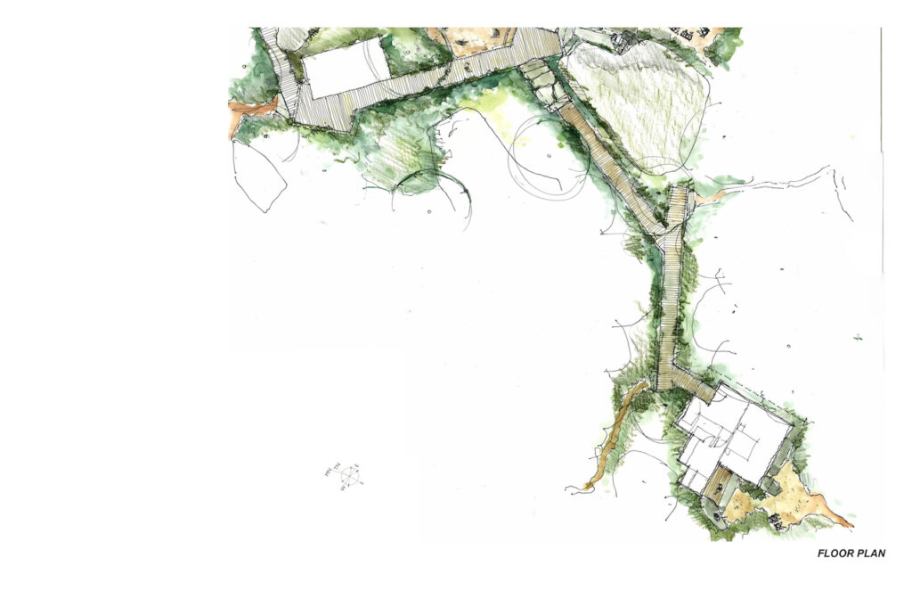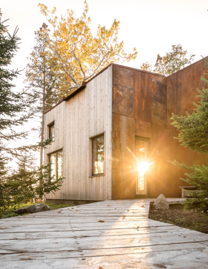 The design of the principal bedroom suite was inspired by the unique site, allowing for a separate yet connected space. Linked to the social hub by a boardwalk, the suite’s location provides privacy and immersion in the natural surroundings. This layout capitalizes on the extraordinary views the site offers, ensuring a peaceful and intimate connection to the landscape.