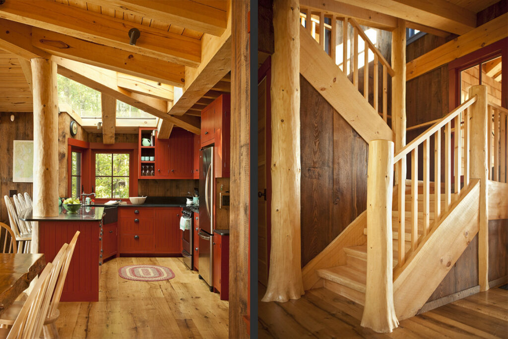 The visible structure of the camp and finishes throughout were carefully detailed and then painstakingly fitted and assembled by a skilled team of craftsmen, using pine logs, timbers, and sheathing supplied by local mills and woodlots.