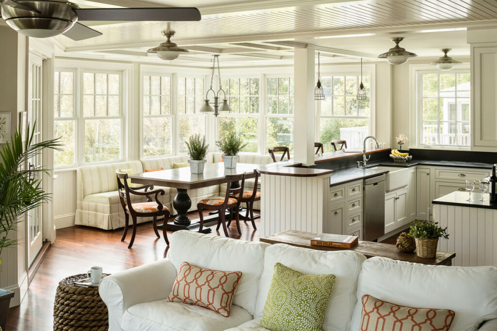 The reborn Rhapsody Cottage was completed in the summer of 2012. The intent of the owners was for the rebuild to reflect the spirit and charm of the original cottage, but to have an entirely reconfigured floor plan. An essential component of the design was creating an outdoor porch/deck space that is an extension of the living/dining /kitchen area. A 3rd-floor attic/eyrie space was also included.