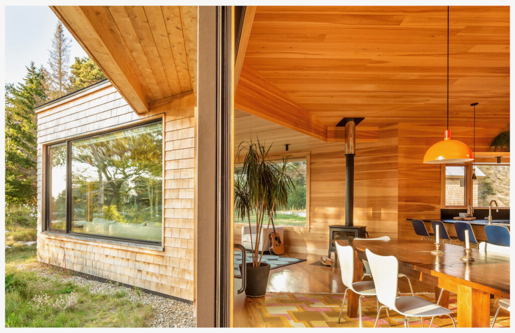 The Sebasco Cottage successfully combines relaxed coastal living with modern efficiency. Its thoughtful design, featuring large windows and a high-performance envelope, provides a bright and comfortable living space that maximizes views while minimizing environmental impact, making it an ideal retreat for its owners.