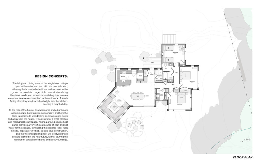 The project focused on creating a low-profile, single-level cottage that blends seamlessly with its coastal surroundings. Built on a concrete slab, the cottage sits close to grade, enhancing its connection to the landscape. Prioritizing energy efficiency, the design incorporates a high-performance building envelope and systems, ensuring sustainability and comfort for the families who share the space.