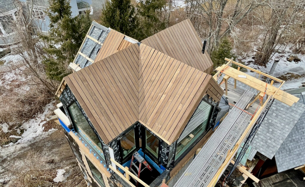 The envelope update for the Wink House’s tower in 2021 involved installing a distinctively designed boarded roof. This “think-different” approach to roofing was chosen to complement the house’s lighthouse-inspired architecture, adding both visual interest and enhanced weather protection.